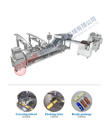 適用于多枚餅干的無托盤集合大包裝,方、圓、橢圓等各種形狀餅干皆可。? 主要技術參數(shù):? 包裝能力:30-120包/分(據(jù)包裝膜材質,厚度及包裝規(guī)格確定)? 包裝規(guī)格:長80-240mm,寬30-90mm,高30-80mm? 總機尺寸:(三伺服)主機部分:4020mm*1200mm? (五伺服)主機部分:4600mm*1260mm? 裝機總容量:(三伺服)5.2KW, 三相380V, 50Hz? (五伺服)8.2KW, 三相380V, 50Hz? 總重量:1500kg? 包裝材料:紙/PE,OPP/PE,OPP/AL/PE等適合于加熱封口的包裝材料